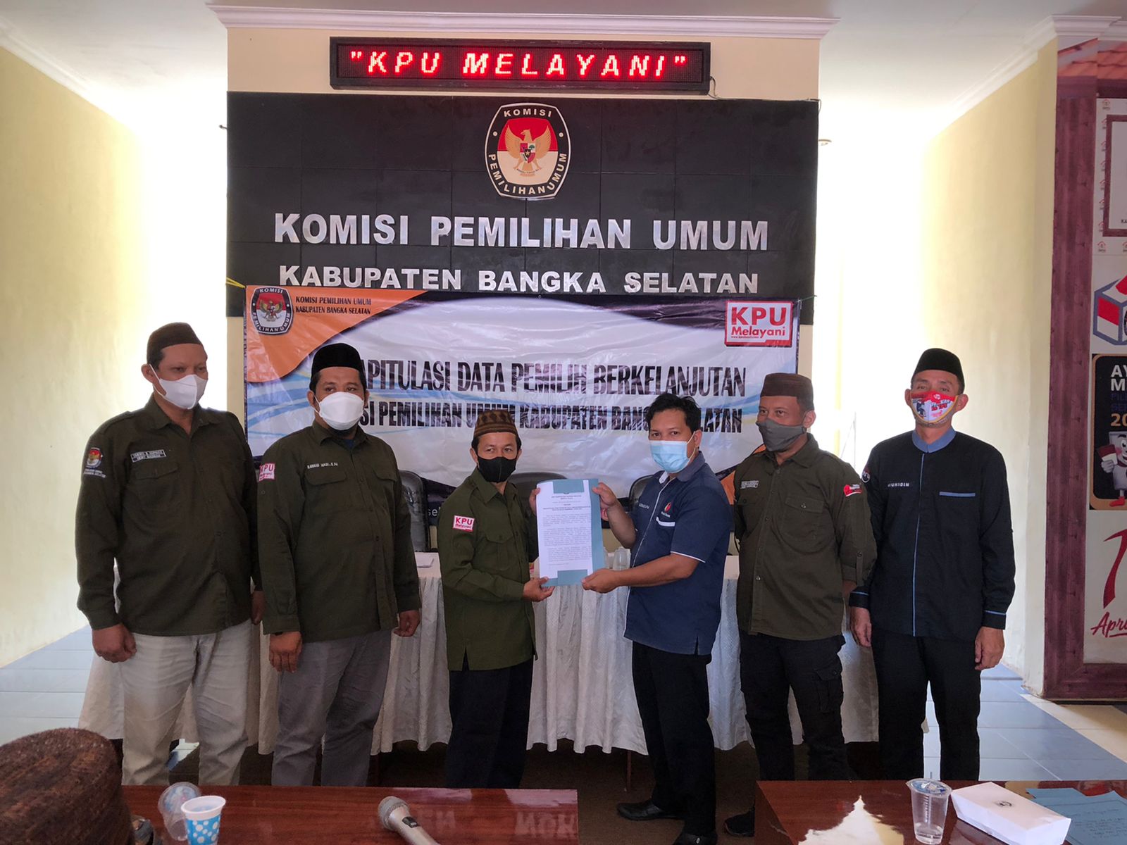 Hasil pemutakhiran daftar pemilih berkelanjutan pada periode bulan Desember 2021 berdasarkan berita acara KPU Bangka Selatan Nomor 30/PL.02-BA/1903/KPU-Kab/XII/2021 yakni sejumlah 138.500 Pemilih dengan rincian 71.094 pemilih laki - laki dan 67.406 pemilih perempuan tersebar di 8 Kecamatan Wilayah Kabupaten Bangka Selatan.