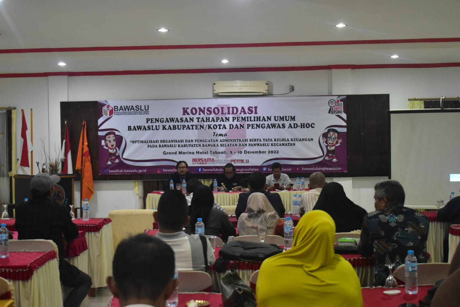 Toboali - Badan Pengawas Pemilu (Bawaslu) Kabupaten Bangka Selatan (Basel) menggelar diskusi bersama Forum Cyber Media Bangka Selatan (FCMB) untuk membantu mensosialisasi pengawasan pemilu guna menangkal informasi atau berita hoax pada saat pesta demokrasi serentak di tahun 2024 mendatang, di Grand Marina Hotel Toboali, Jumat (9/12/2022) malam.