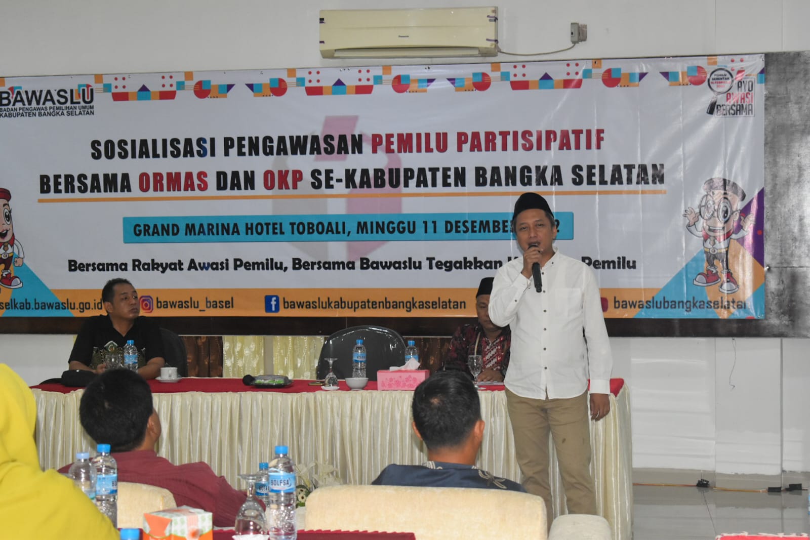 “Kalau Bawaslu sifatnya hanya diamanatkan oleh undang-undang sebagai penyelenggara untuk mengawasi, namun dalam pengawasan juga Bawaslu butuh dukungan, partisipasi dari semua pihak termasuk dari organisasi masyarakat dan kepemudaan,” jelas Ferry pada saat acara sosialisasi pengawasan pemilu bersama organisasi masyarakat dan kepemudaan, Minggu (11/12/2022), di salah satu hotel di Toboali.