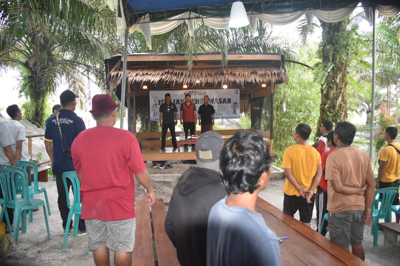 AIRGEGAS, BASELKAB.BAWASLU.GO,ID - Badan Pengawas Pemilihan Umum (Bawaslu) Kabupaten Bangka Selatan (Basel) kembali melaksanakan kegiatan jelajah pengawasan pada Minggu (6/11) sore di Pemancingan Awek Desa Bencah, Kecamatan Airgegas.