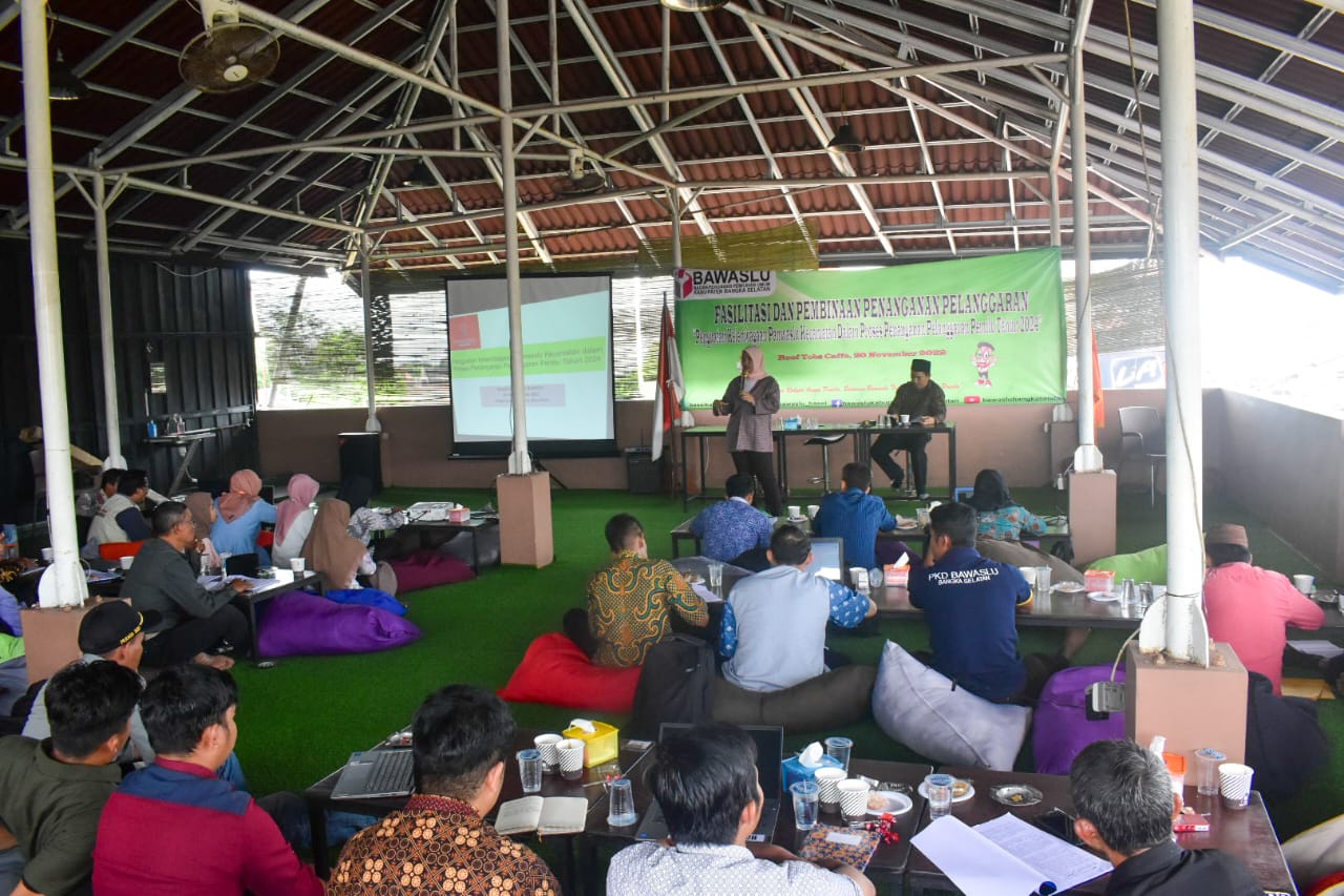 Toboali - Bawaslu Kabupaten Bangka Selatan menggelar kegiatan Fasilitasi dan Pembinaan Penanganan Pelanggaran Pemilu dengan tema "Penguatan kelembagaan Panwaslu Kecamatan dalam proses penanganan pelanggaran pemilu tahun 2024 yang dilaksanakan di RoofTobs Toboali. Minggu, 20/11/2022.