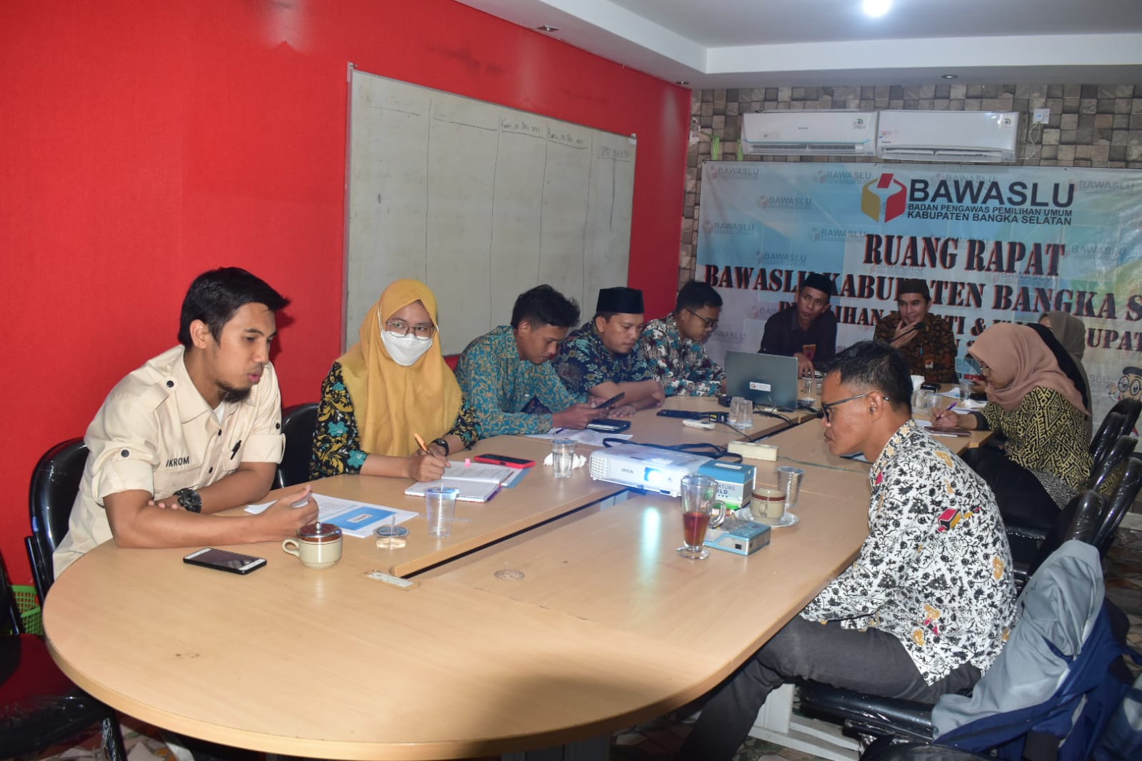 Toboali-Badan Pengawas Pemilihan Umum (Bawaslu) Kabupaten Bangka Selatan melaksanakan Rapat Penguatan Kapasitas SDM dalam Penyelesaian Sengketa Proses Pemilu di kantor Bawaslu Kabupaten Bangka Selatan. (23/06)