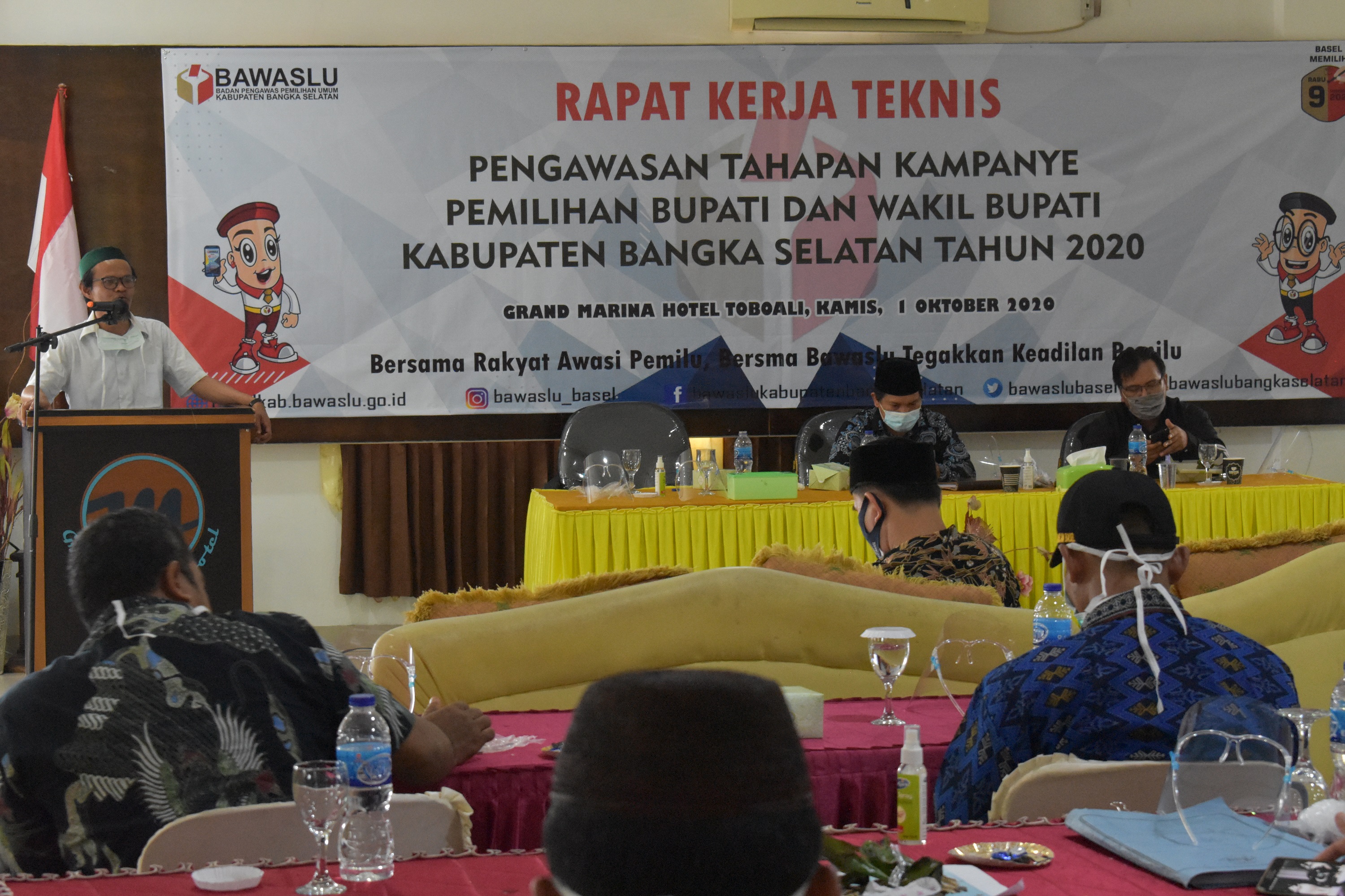 Rapat Kerja Teknis Pengawasan Tahapan Kampanye Pemilihan Bupati dan Wakil Bupati Kabupaten Bangka Selatan, Kamis, 1 Oktober 2020/ Foto : Budi Hartono