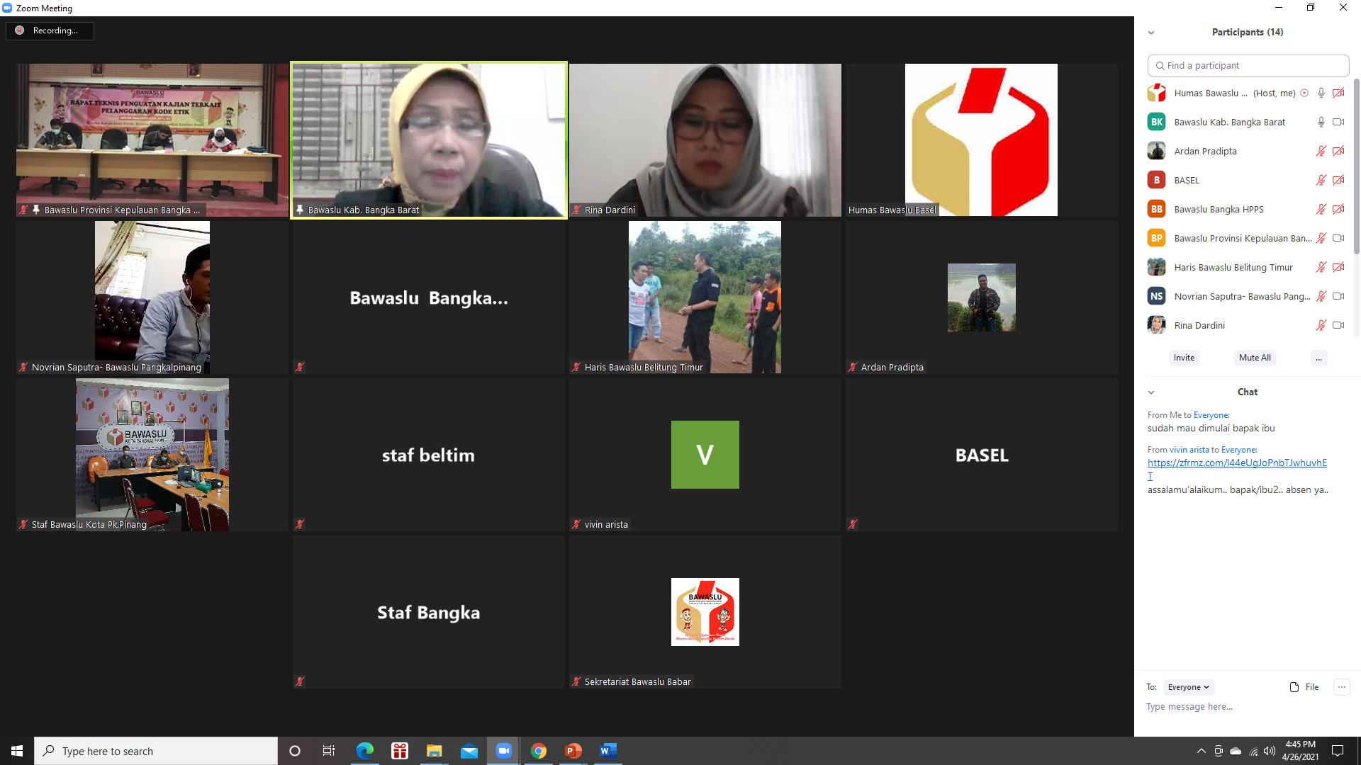 Kegiatan ini dilaksanakan dalam rangka penguatan dan peningkatan kapasitas sumber daya manusia terkait kajian pelanggaran kode etik pada Badan Pengawas Pemilihan Umum Kabupaten/kota se-Provinsi Kepulauan Bangka Belitung yang bergabung melalui via zoom meeting.