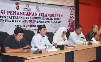 Toboali - Dalam rangka menyamakan persepsi dan pandangan, Bawaslu Kabupaten Bangka Selatan menyelenggarakan rapat koordinasi evaluasi Sentra Penegakkan Hukum Terpadu (Gakkumdu) dan Supervisi dan Monitoring Sentra Gakkumdu di Sekretariat Bawaslu setempat, Rabu (28/12/22).