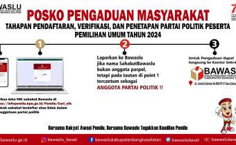 Toboali, Jumat (12/08) Menindaklanjuti surat instruksi Bawaslu Republik Indonesia Nomor 3 tahun 2022 Tentang Pendirian Posko Pengaduan Masyarakat, Bawaslu Kabupaten Bangka Selatan membuka posko pengaduan guna menerima adanya aduan dan keberatan masyarakat terhadap penggunaan data diri sebagai pen