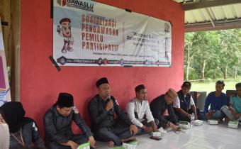 Toboali, Badan Pengawas Pemilihan Umum Kabupaten Bangka Selatan gelar Sosialisasi Pengawasan Pemilu Partisipatif di Dusun Gumbak Desa Tepus Kecamatan Airgegas Kabupaten Bangka Selatan, 13/03/2023.